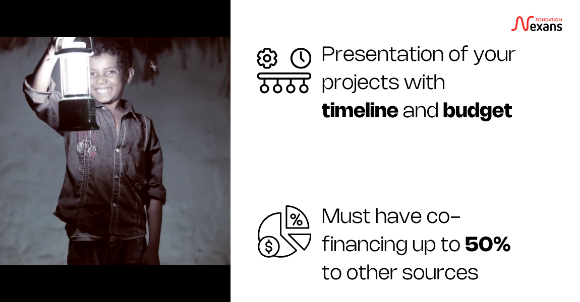 Every year, the Fondation Nexans launches a call for projects. It is open for any non profit organization or NGO working in the field of renewable energy. All information below